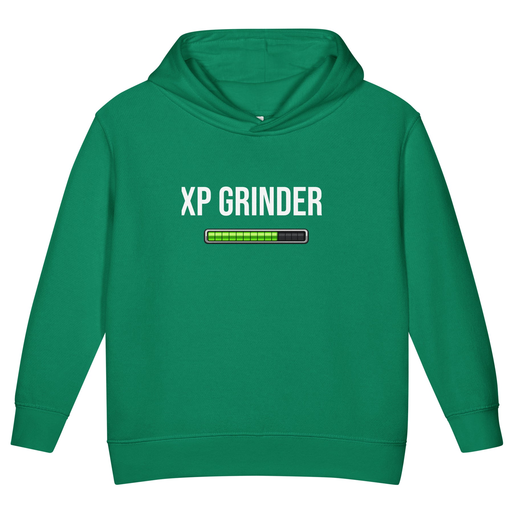 XP Grinder Toddler fleece pullover hoodie in green with progress bar graphic.