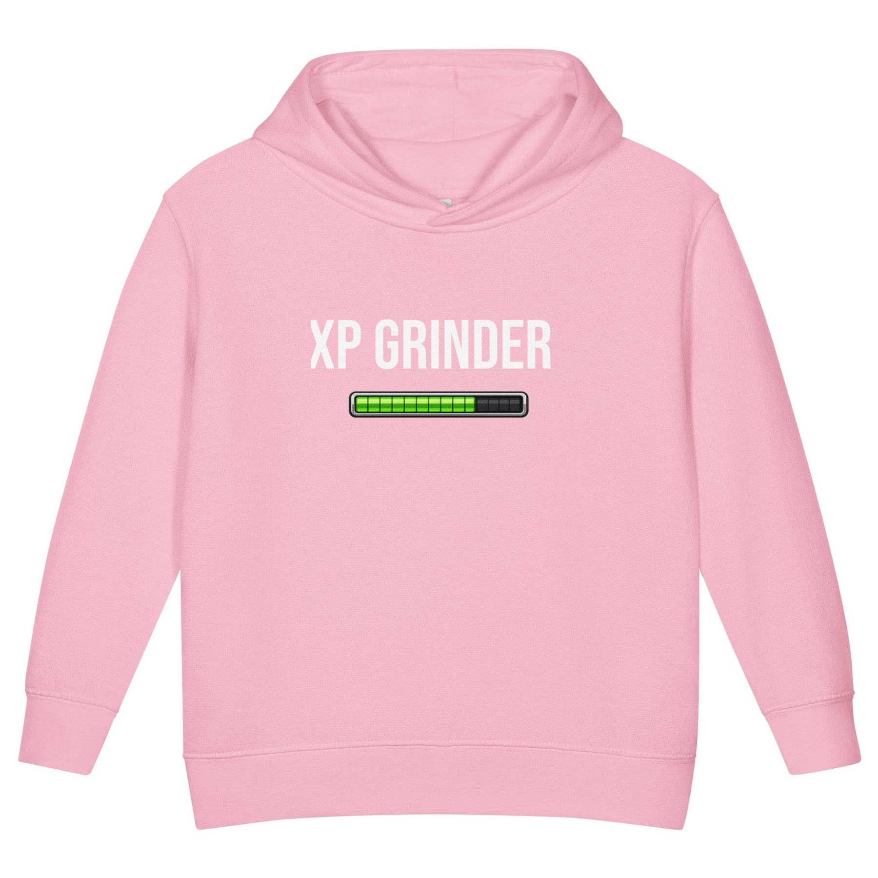 XP Grinder Toddler fleece pullover hoodie in pink with progress bar graphic.